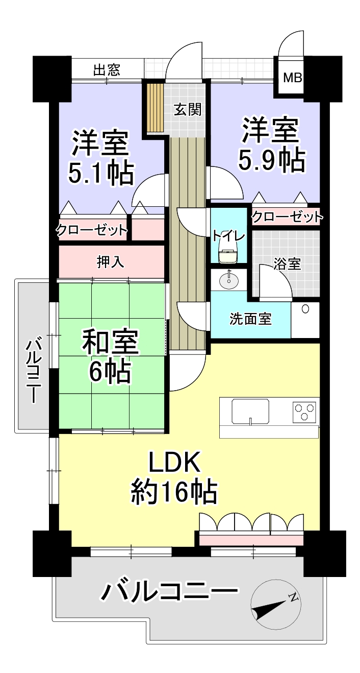 エイルマンション別府青山Ⅲ最上階角住戸のご紹介です。