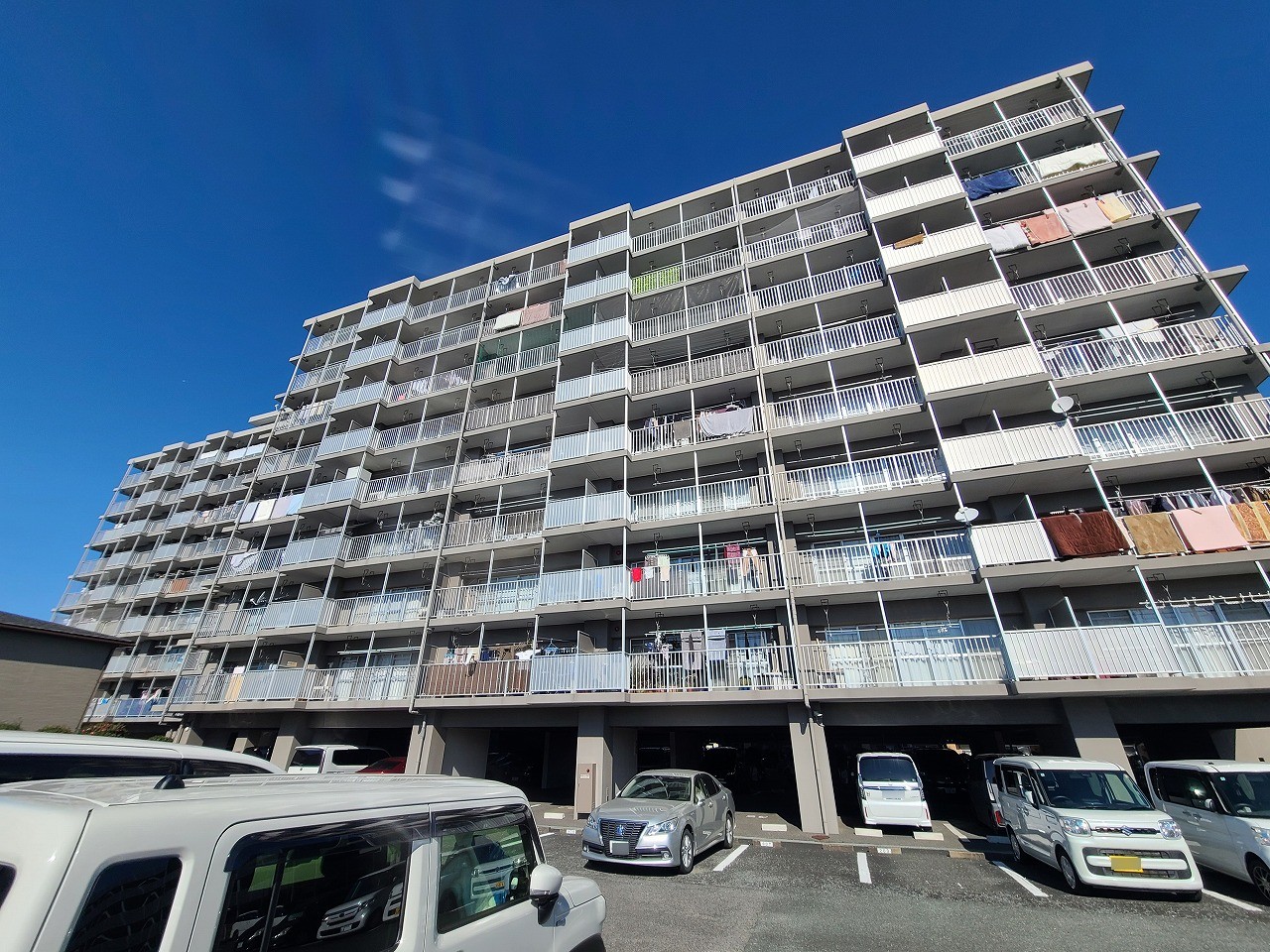 〇バルコニー側には高い建物がないため、陽当たりが良く広がりのある景色を楽しめます。