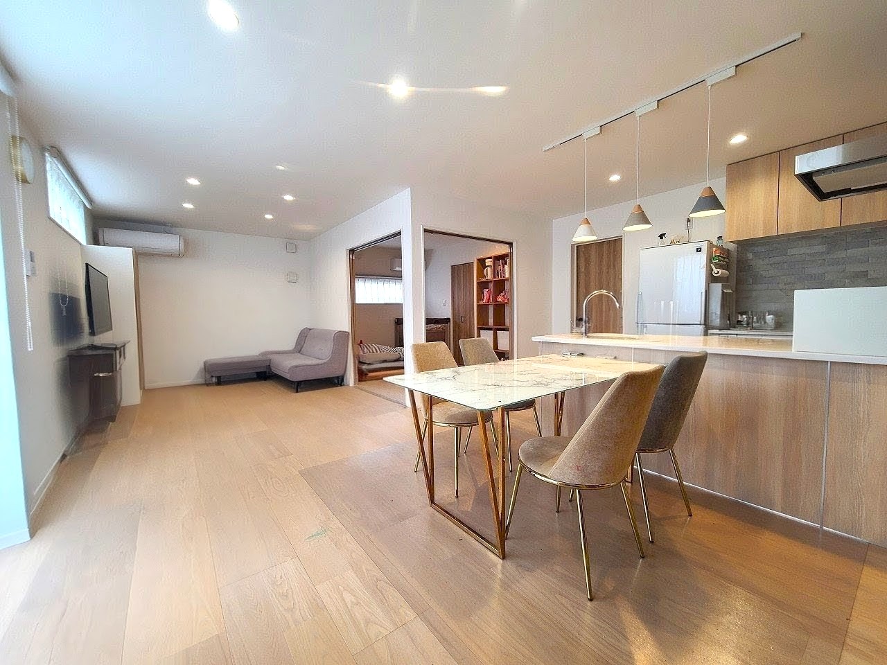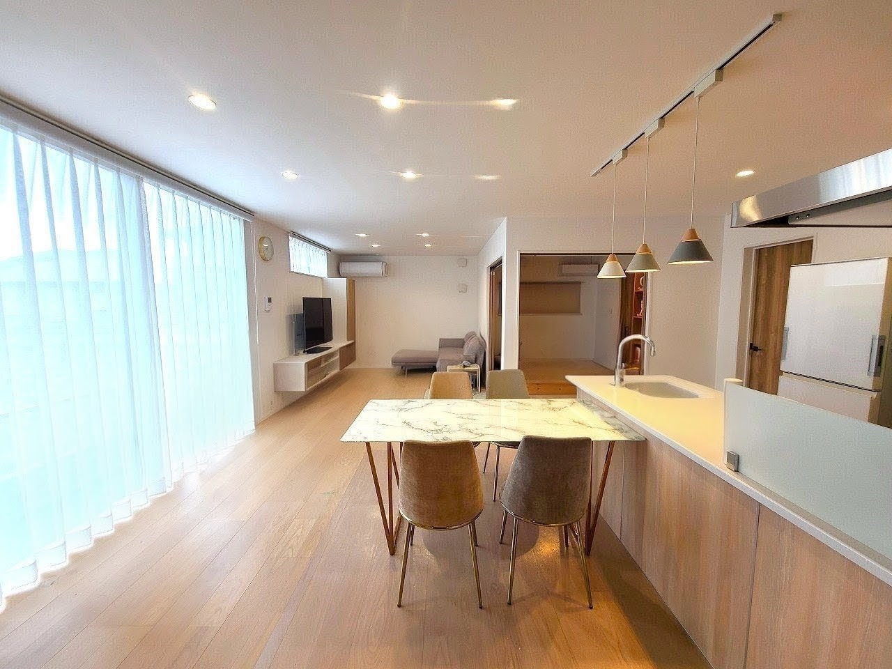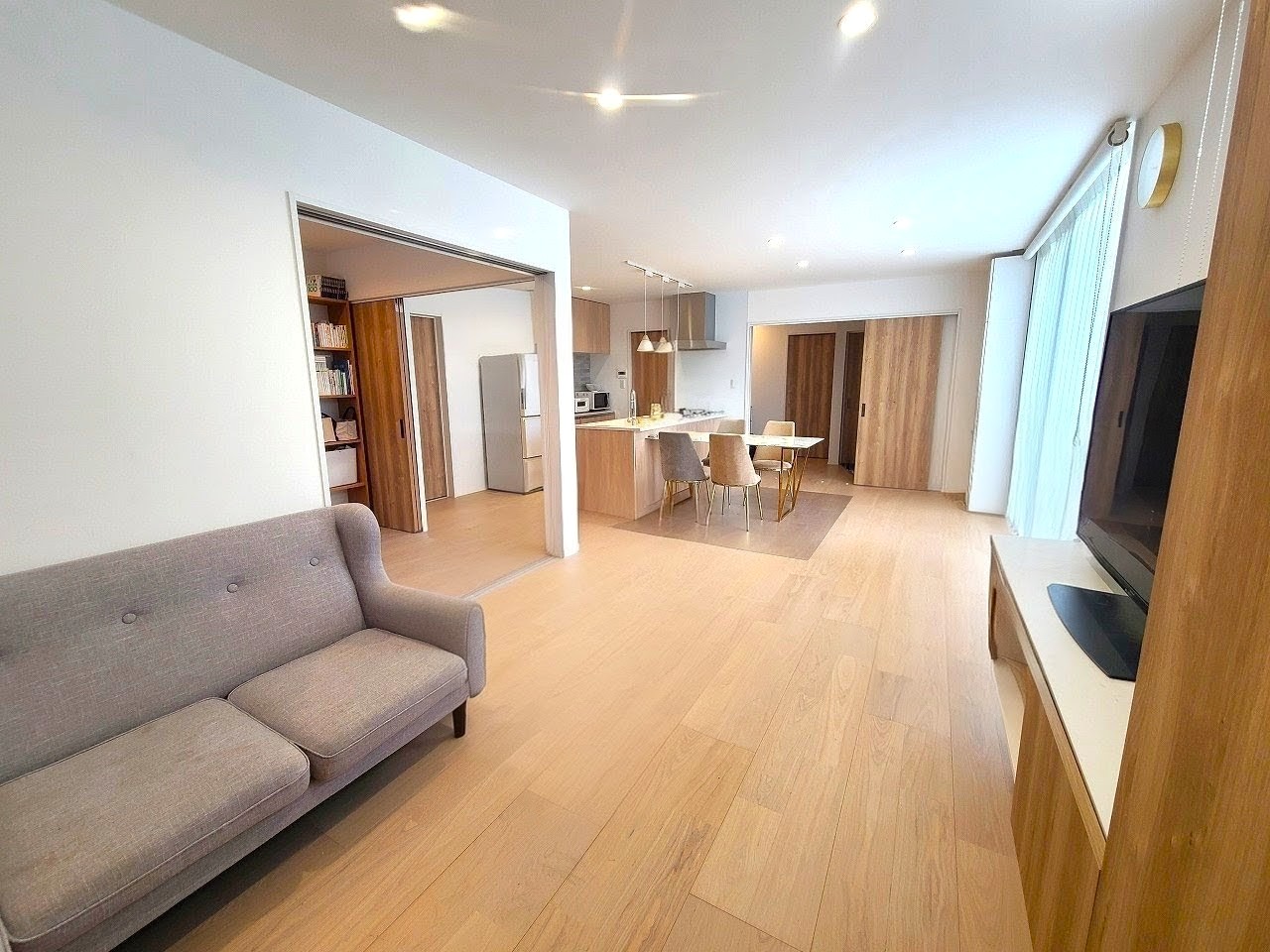 〇19帖越えのLDKは1.5帖掃き出し窓の設置や採光窓によりとても明るい室内となっています。また、洋室と合わせて広々とした空間としてお使い頂けます。