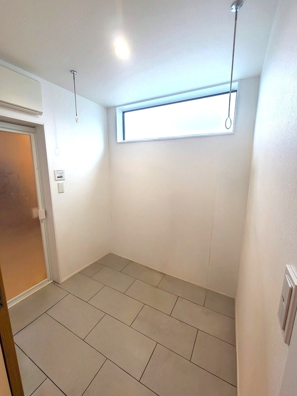 〇サニタリールームには室内物干し付。浴室乾燥機と合わせて室内干しスペースを確保しています。