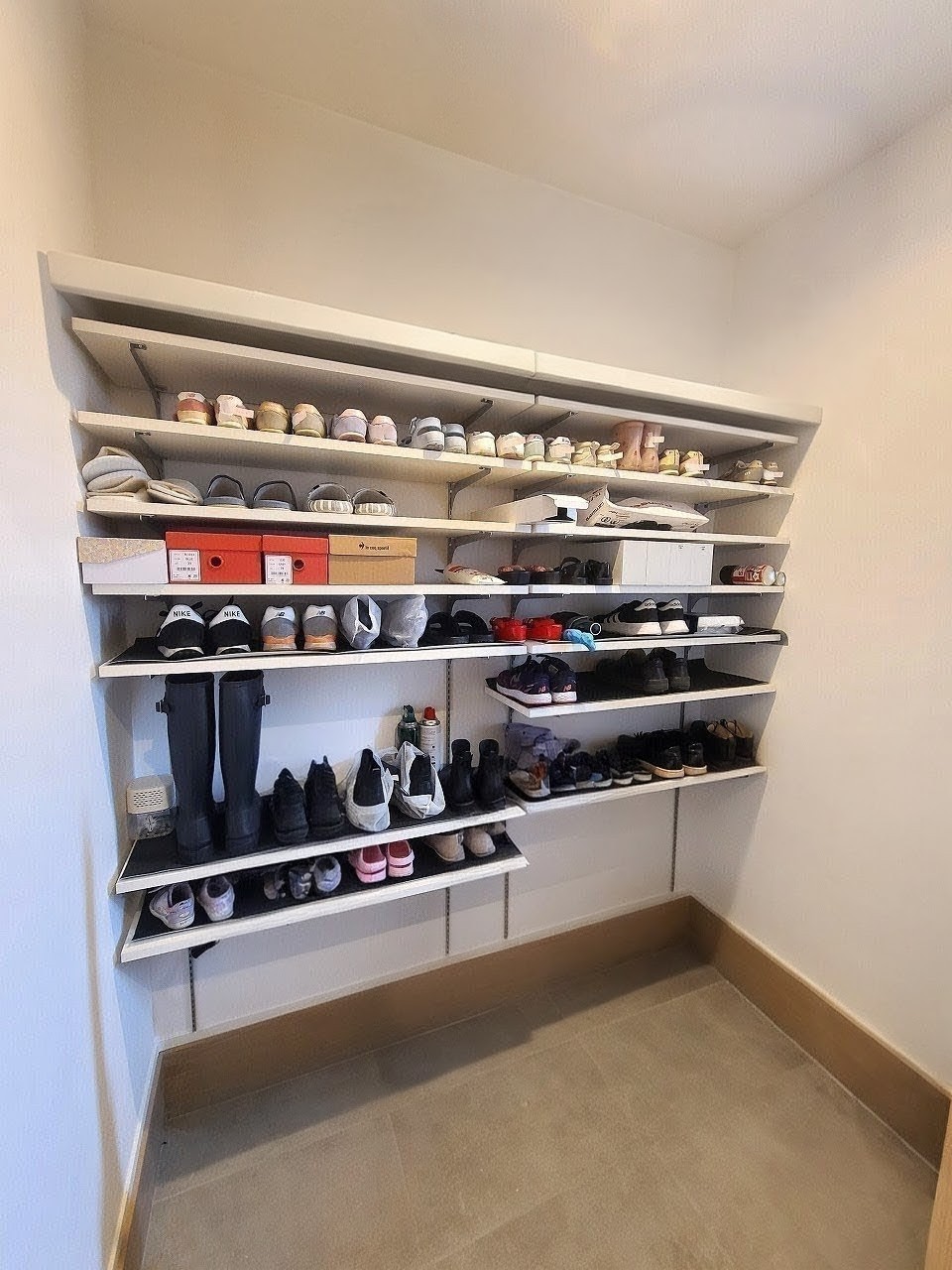 〇玄関の隣には便利なシューズインクローゼットを設置。靴の収納はもちろん外使いの道具などを置いても余裕があります。