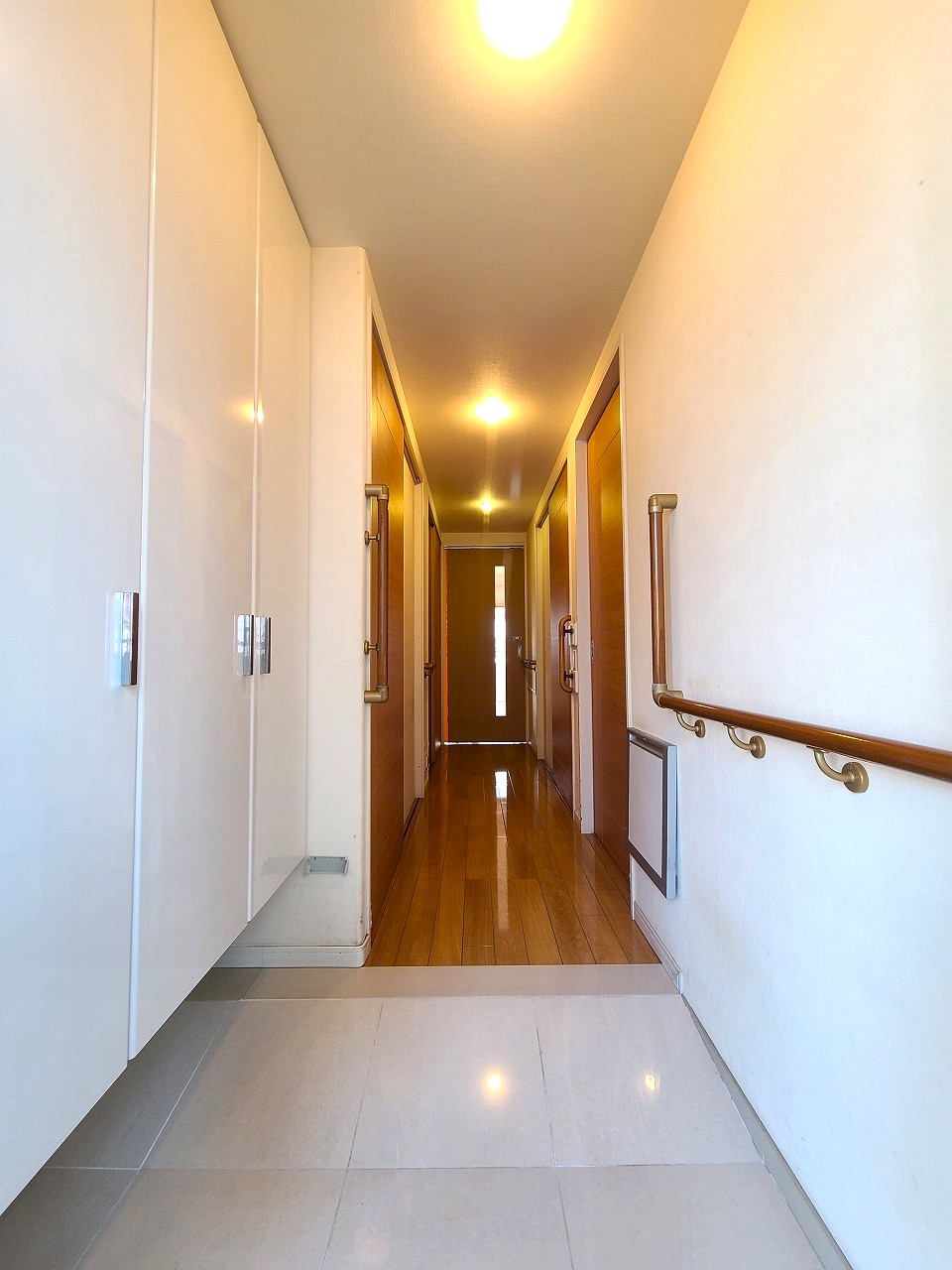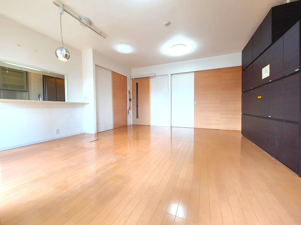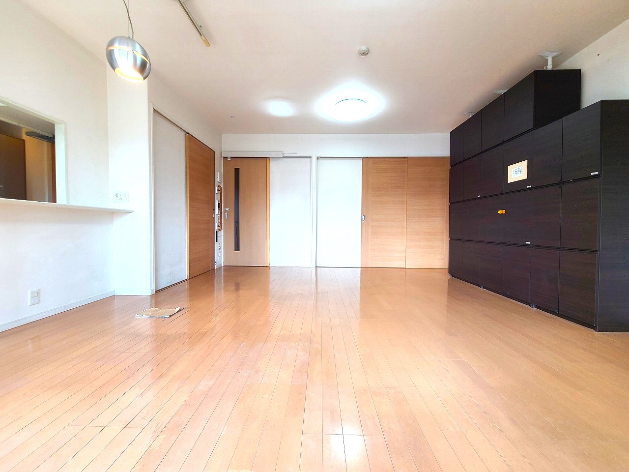 〇新築時に3LDK→2LDKへ設計変更したお部屋です。廊下の幅やLDKを広く取り、ドアは引き戸へ変更・収納を多く設置した間取りとなっています。