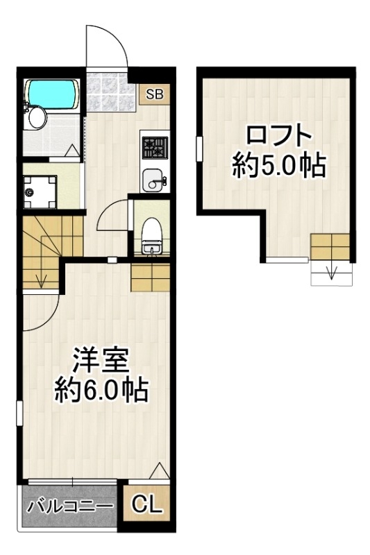 人気の階段タイプのロフト付!床もホワイトの駅近賃貸物件です♪