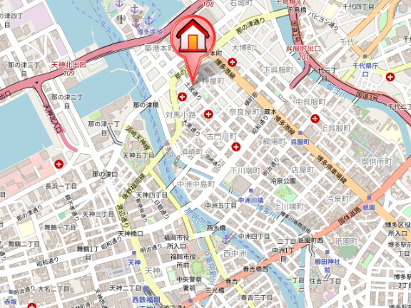 | 交通 | 福岡市営地下鉄空港線「中洲川端」駅より徒歩11分 福岡市営地下鉄箱崎線「呉服町」駅より徒歩12分 福岡市営地下鉄七隈線櫛田神社前駅 徒歩20分 |