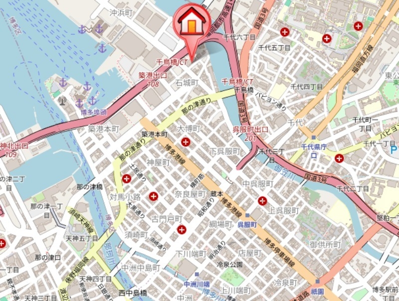 | 交通 | 福岡市営地下鉄箱崎線「千代県庁口」駅より徒歩14分 福岡市営地下鉄箱崎線「呉服町」駅より徒歩17分 福岡市営地下鉄空港線中洲川端駅 徒歩23分 |