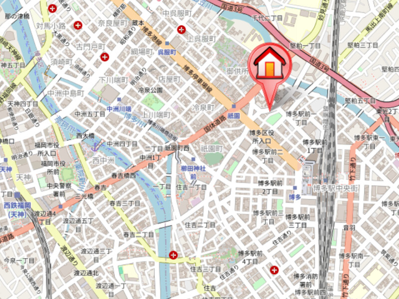 | 交通 | 福岡市営地下鉄空港線「祇園」駅より徒歩3分 JR鹿児島本線(博多~八代)「博多」駅より徒歩9分 福岡市営地下鉄七隈線櫛田神社前駅 徒歩9分 |