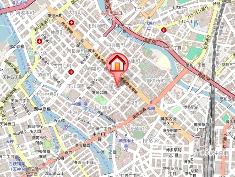 | 交通 | 福岡市営地下鉄箱崎線「呉服町」駅より徒歩5分 福岡市営地下鉄空港線「祇園」駅より徒歩6分 福岡市営地下鉄七隈線櫛田神社前駅 徒歩8分 |